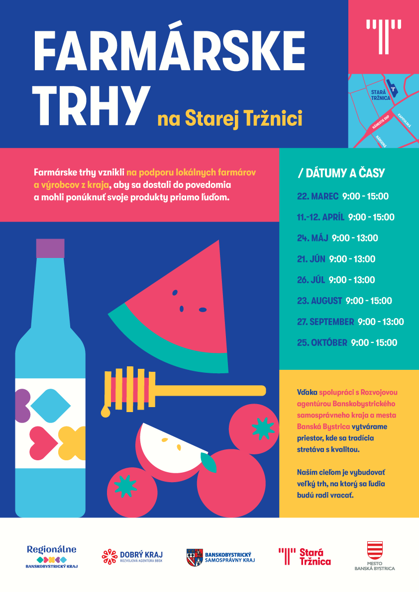 📅 21. 3. 2026🕒 8:00 – 13:00📍 Stará Tržnica, Banská Bystrica Na Starej tržnici v Banskej Bystrici sa uskutoční prvé tohtoročné podujatie Farmárske trhy a raňajky. Návštevníkov čaká viac ako 26 regionálnych výrobcov s ponukou čerstvých farmárskych produktov, domácich potravín a remeselných výrobkov. Súčasťou podujatia budú aj farmárske raňajky, vďaka ktorým si môžu návštevníci produkty […]