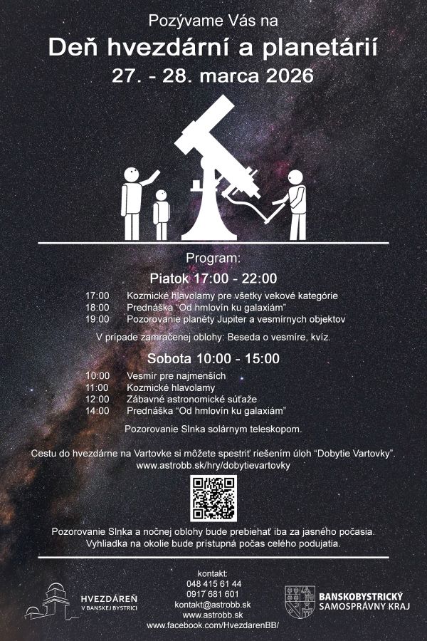V rámci Medzinárodného dňa hvezdární a planetárií sa otvárajú astronomické zariadenia po celom Slovensku. Zaujímavý program pripravila aj Hvezdáreň na Vartovke v Banskej Bystrici.