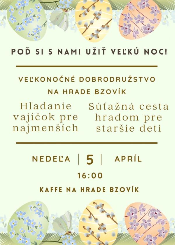 Zažite Veľkú noc na hrade Bzovík hravou a dobrodružnou formou. Deti sa môžu tešiť na hľadanie vajíčok aj súťažnú cestu hradom, ktorá preverí ich šikovnosť a odvahu.